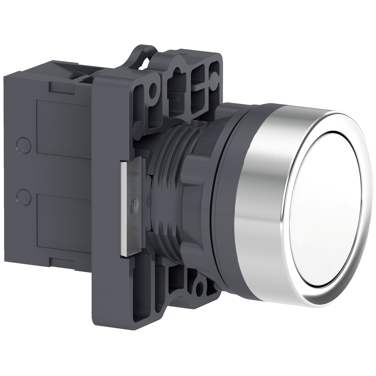 Este botão de pressão modular Schneider Electric Harmony XA2 funciona com um mecanismo de retorno / impulso de mola e possui uma moldura de metal cromada. Possui 1 contato NA e cabe em furos de 22mm. Ele usa terminais de parafuso-clamp.
